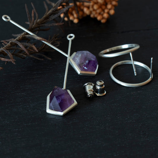 Amethyst Pierce /Silver matte _ Polygon #02