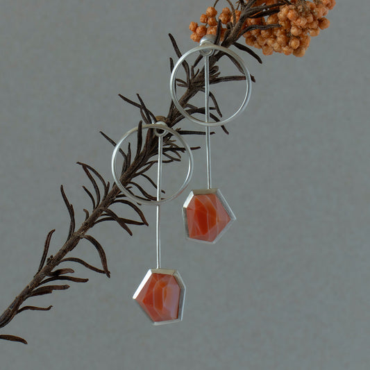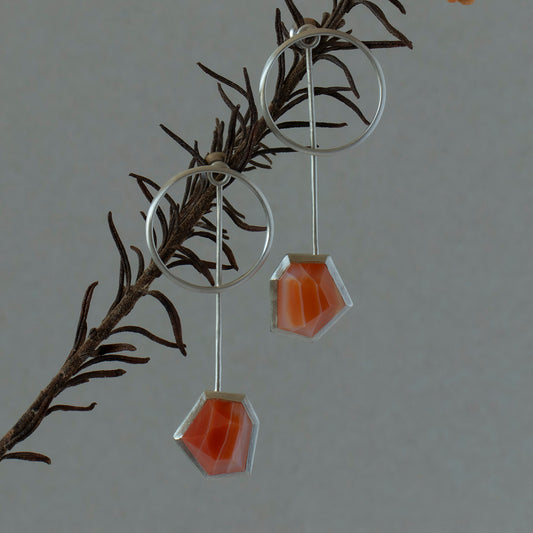 Striped agate Pierce /Silver matte _ Polygon #01
