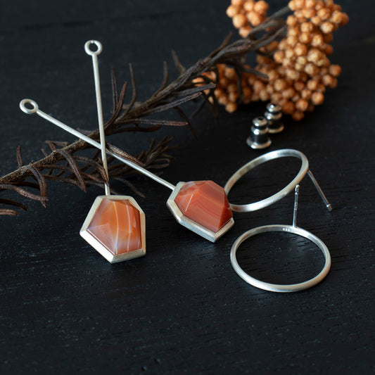 Striped agate Pierce /Silver matte _ Polygon #02