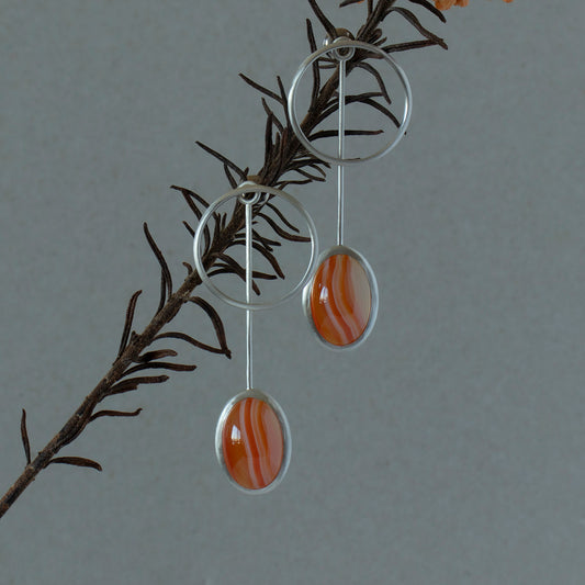 Striped agate Pierce /Silver matte _ Dome #02
