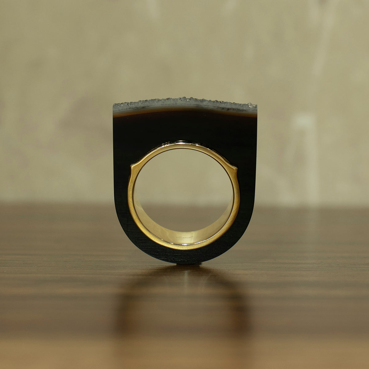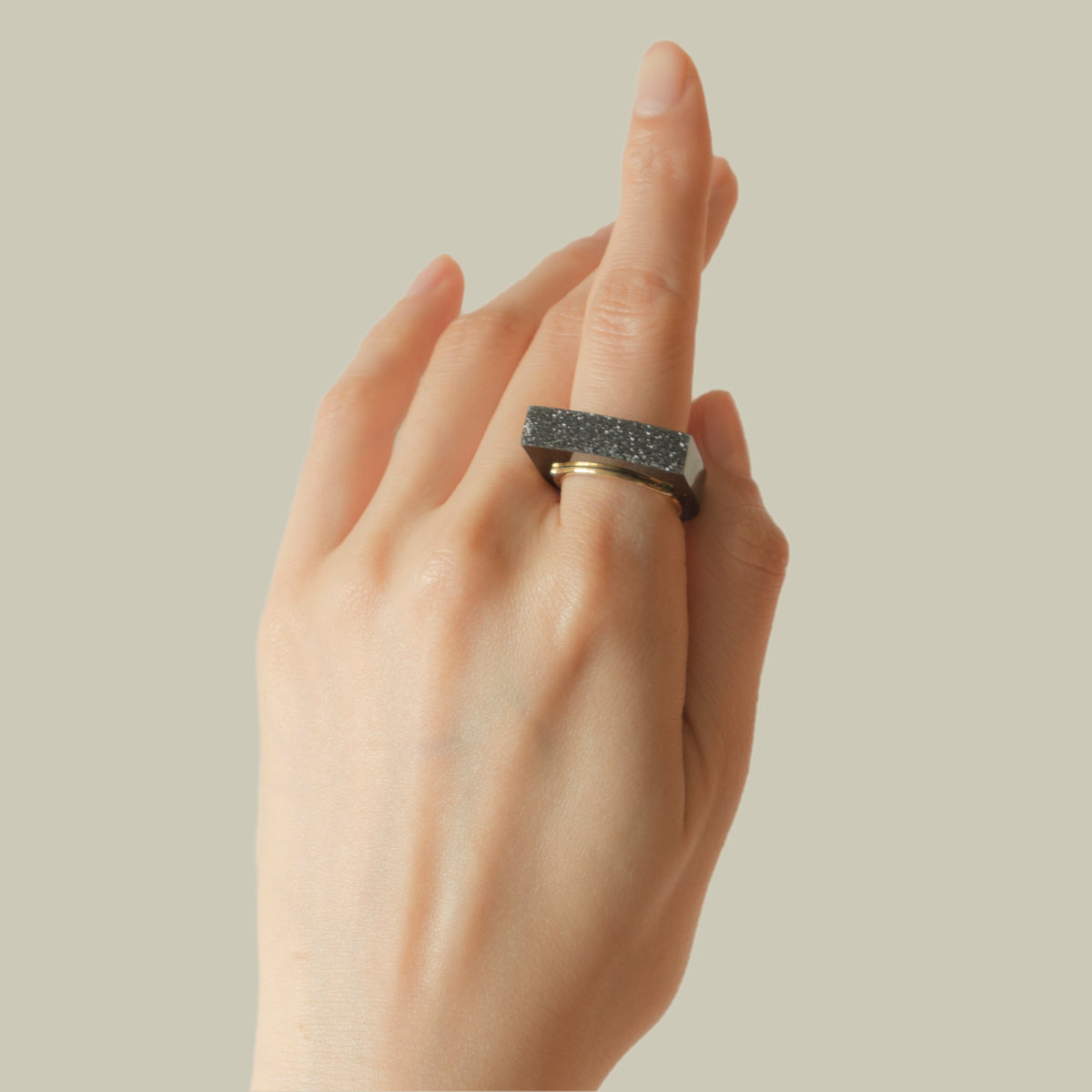 結晶部分を造形として活かした艶やかな漆黒のリング。