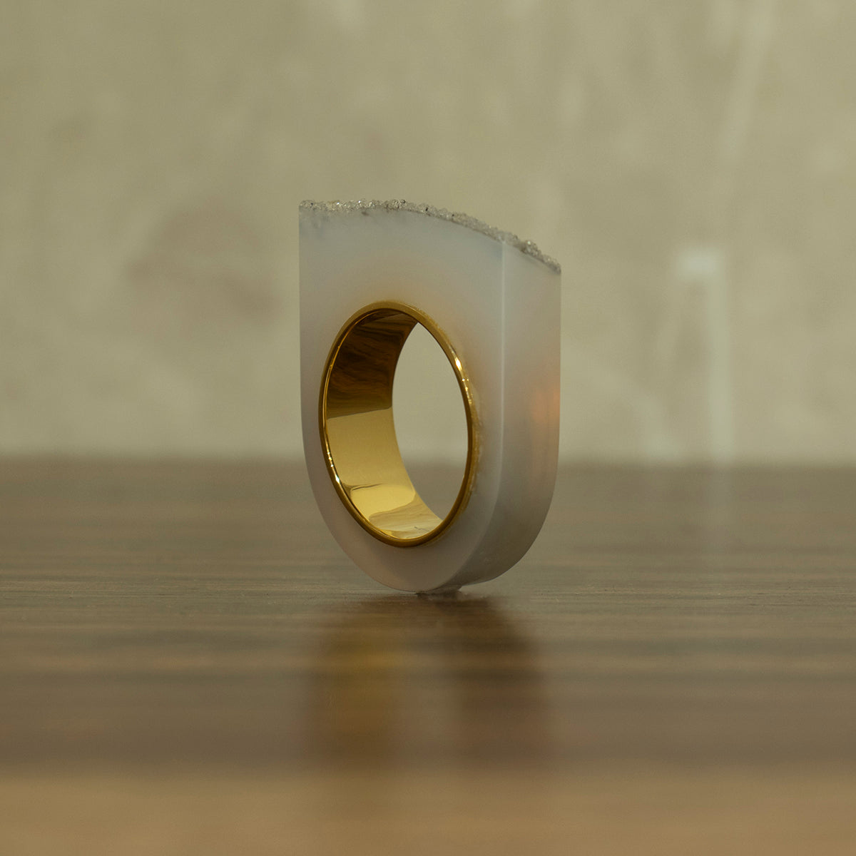 結晶瑪瑙をソリッドに設えたリング。