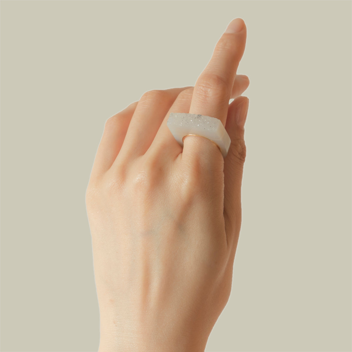 結晶部分を造形として活かしたミルクガラスのような乳白色のリング。
