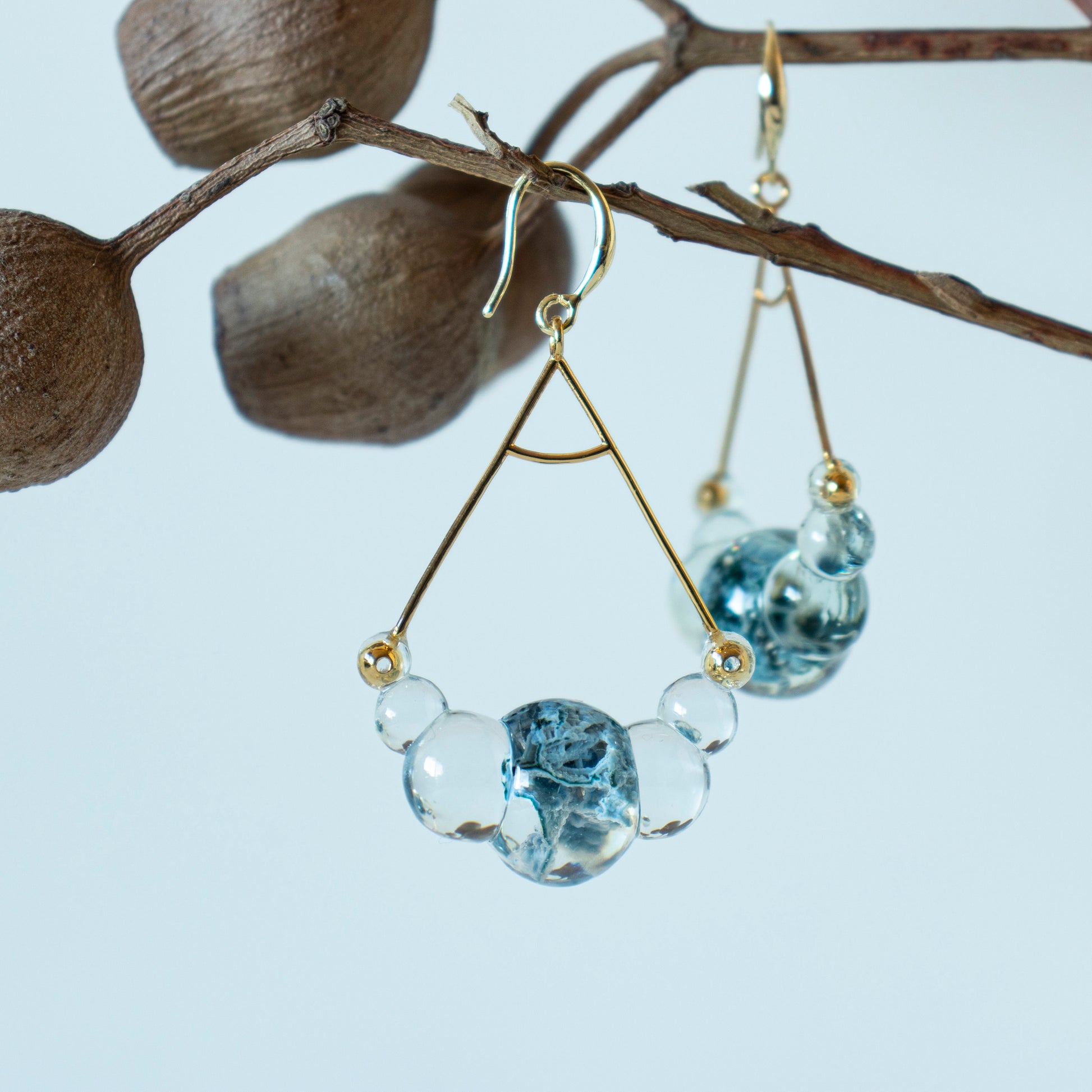 一見して宝石とは呼べない脆く小さな不規則な形の鉱石に、増殖する細胞の様な新たな輪郭を与えて軽やかなピアスに仕立てました。
