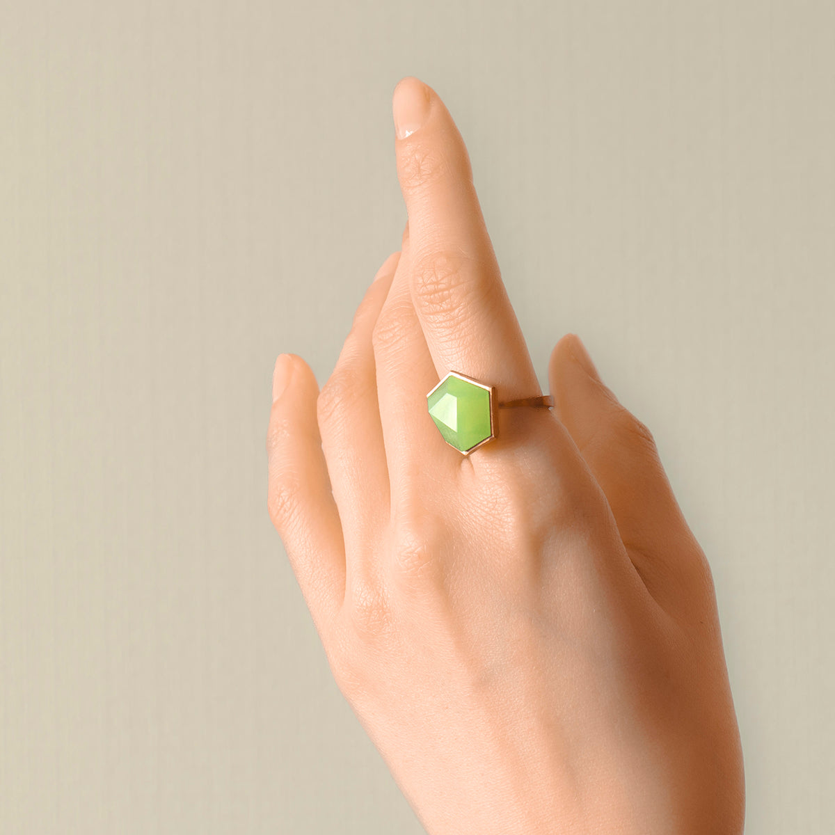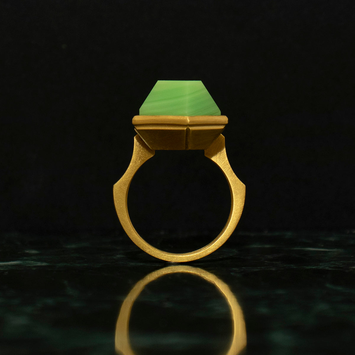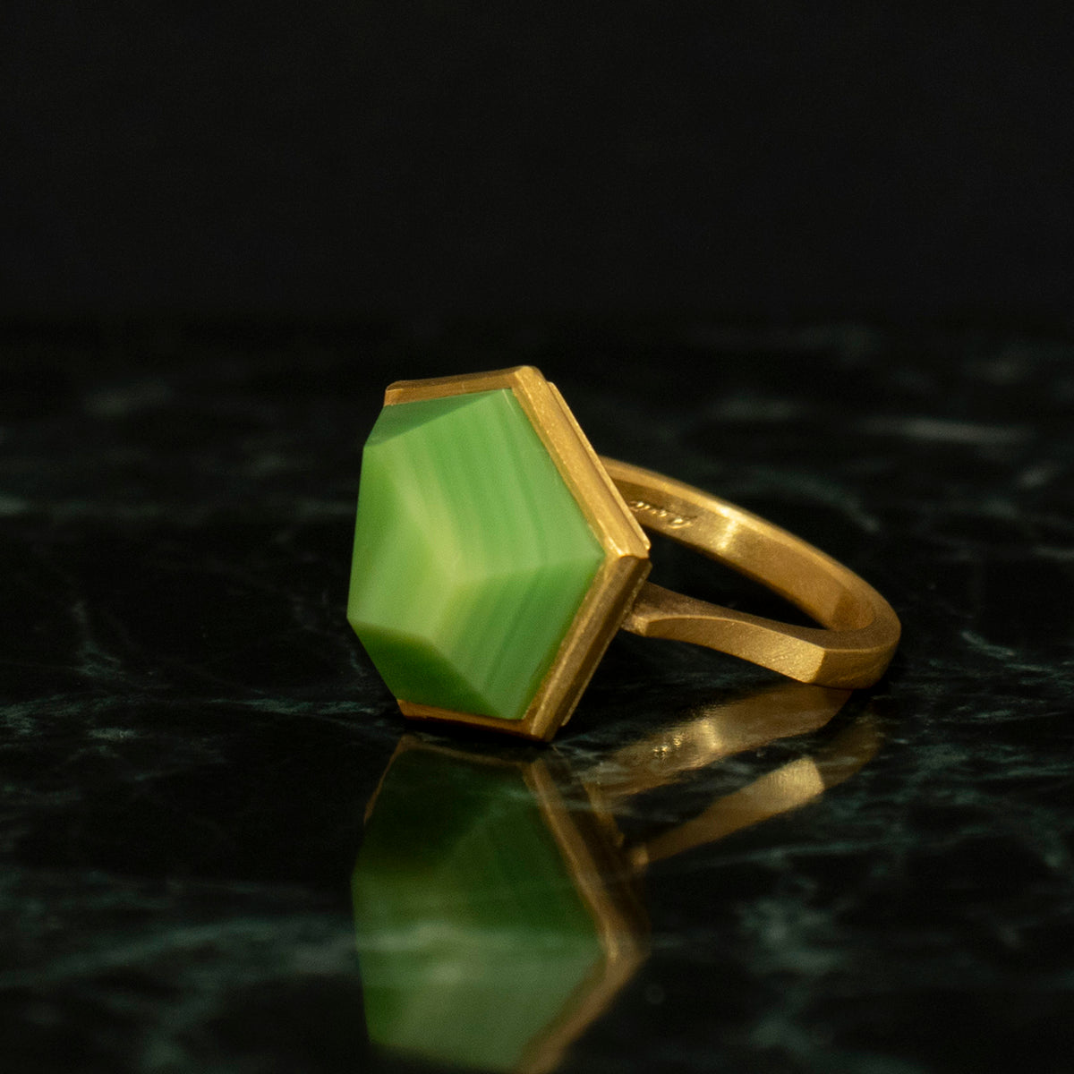 Green agate Ring _ Polygon #03