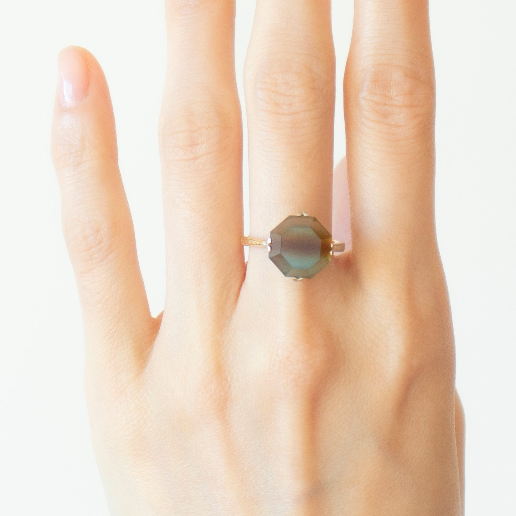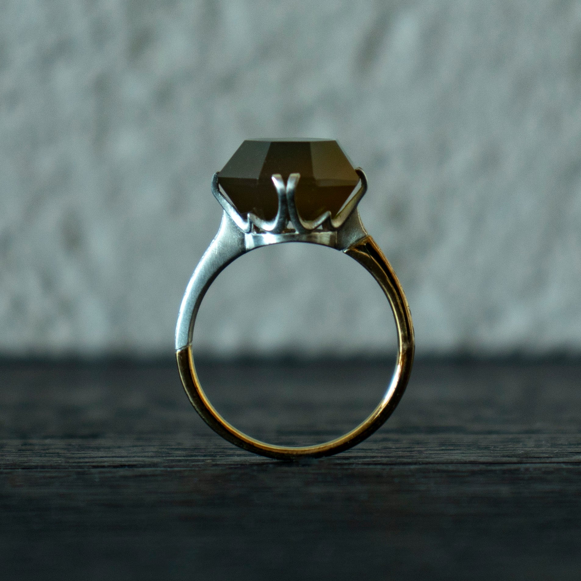 ヴィンテージリングの細やかな造り込みをシルバーのみで再現し、18Kゴールド鍍金とピクチャーアゲートで設えました。経年変化によって、無垢シルバーの硫化と鍍金部分との表情の変化を楽しめる一品。